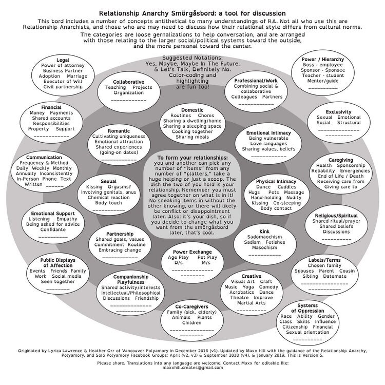 Ran by a relationship coach with 20 years lived experience in non-monogamy, this website is filled with blog articles and resources. - The Relationship Anarchy Smorgasbord